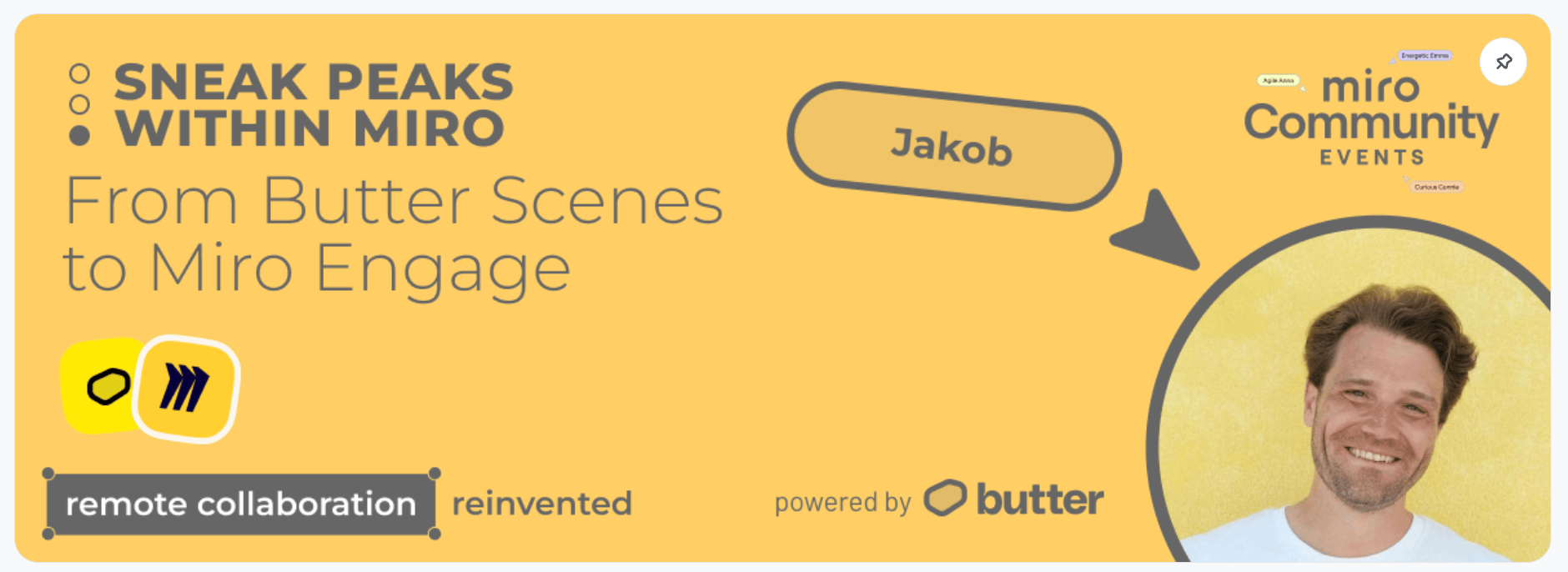 And for the first time ever, he’ll demo Miro Engage, the new feature bringing Butter’s interactive magic - polls, quizzes, engagement tools - directly into Miro.
